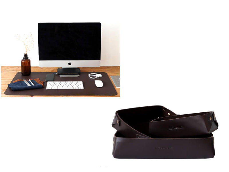Desk Mat- Large + Desk Tray Organiser - Set of Three / Dark Tan
