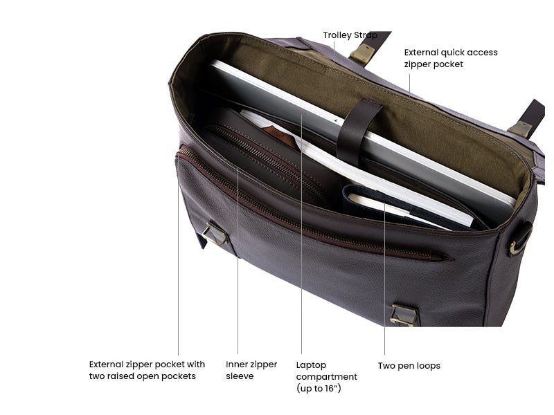 Covent is designed to be an everyday messenger with a modern twist. While the distinctive, vintage appeal adds a sense of style, functional details in and around the bag make it relevant to the times we live in.