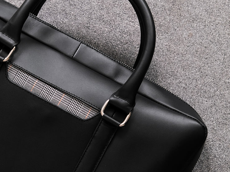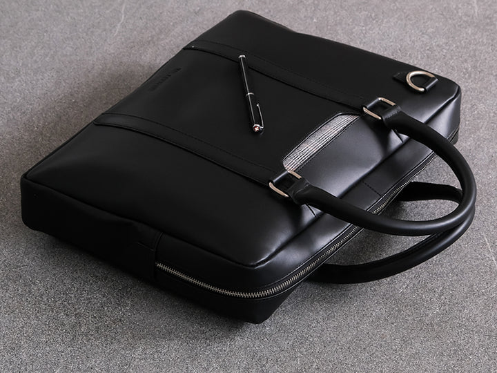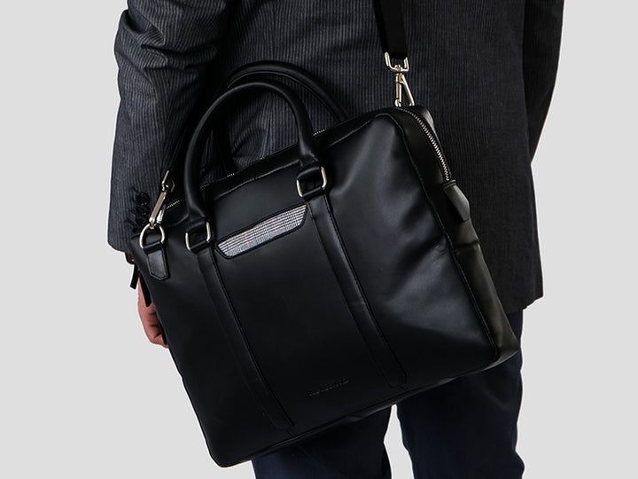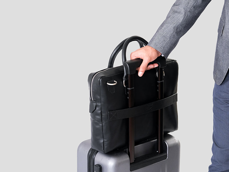 Cushioned handles clad in pebbled leather, a handy zipper pocket, and a trolley strap—practical features crafted for everyday ease.