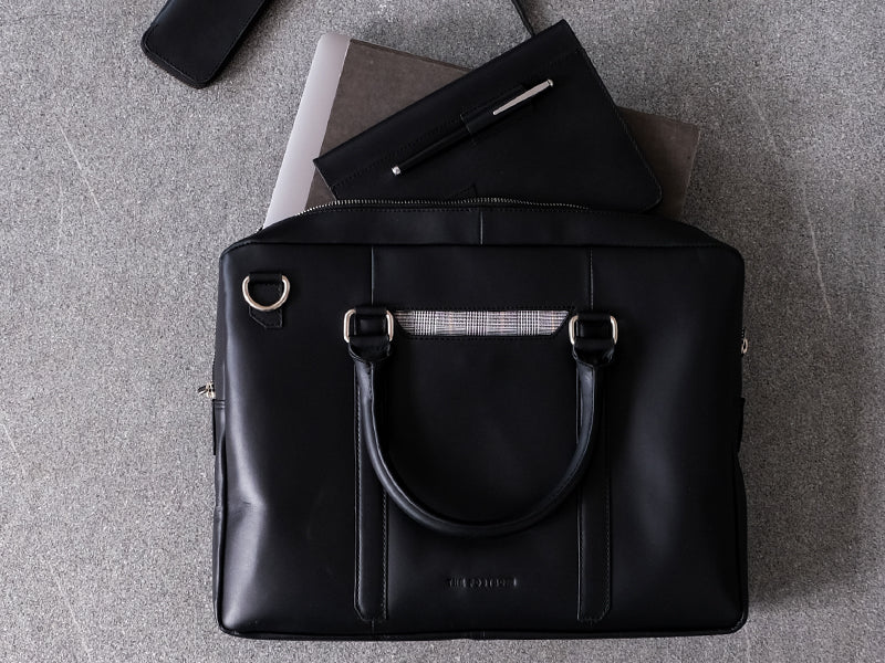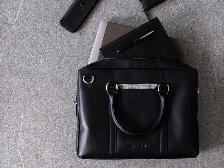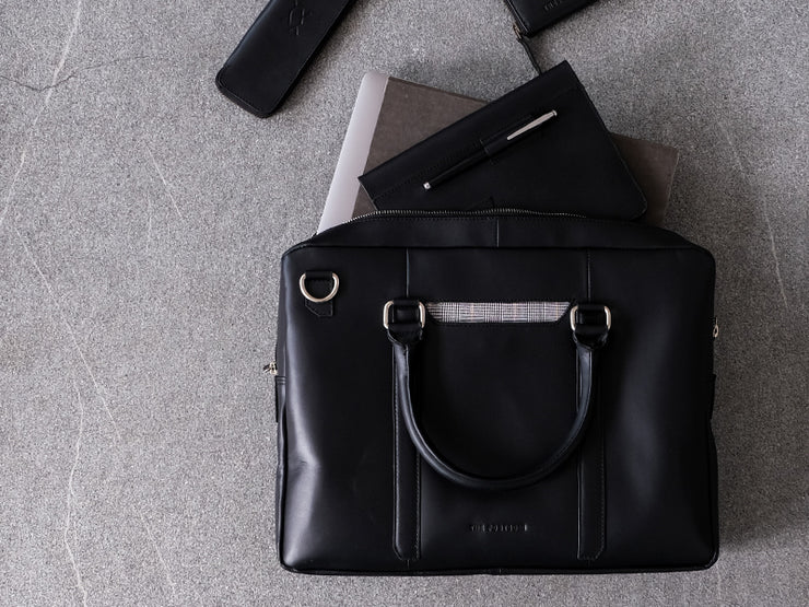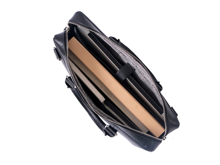 Signature organisation on the inside with a zipper pocket, key lock and leather pen holders make it easy to carry important essentials while on the move.
