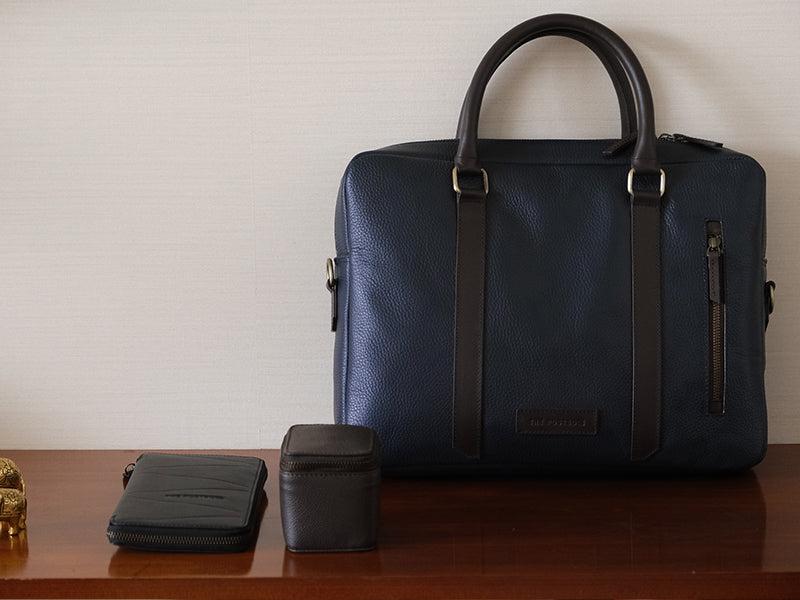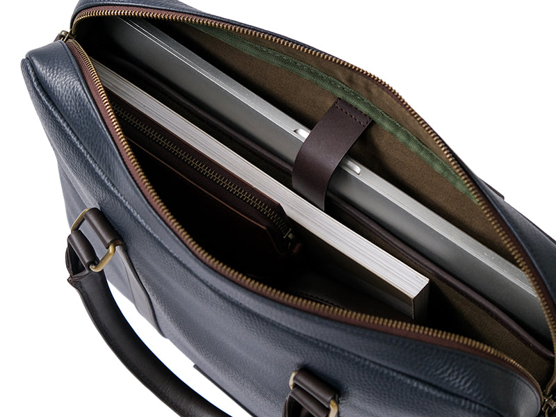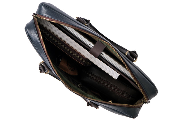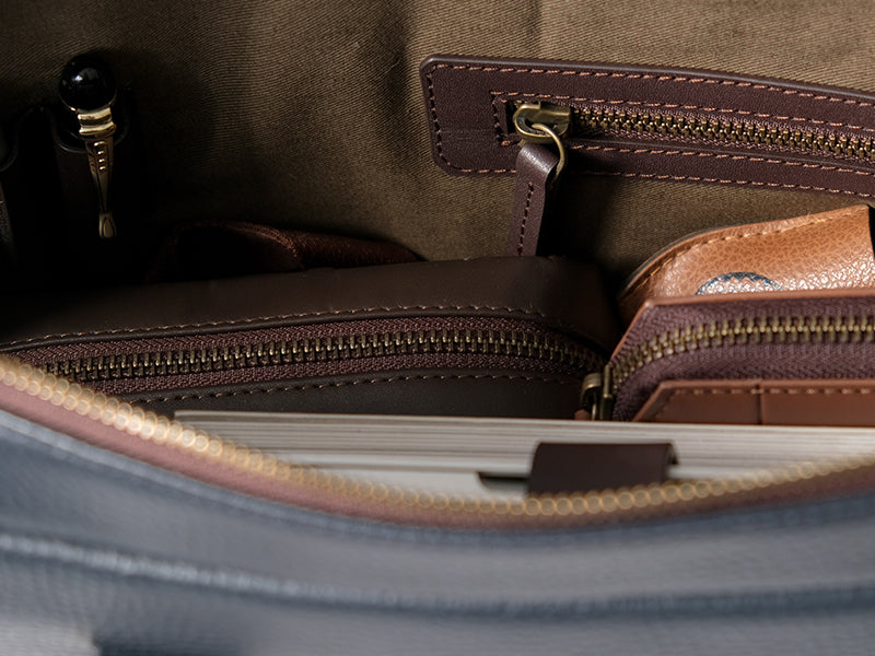 Signature organisation on the inside with a zipper pocket, key lock and leather pen holders make it easy to carry important essentials while on the move.