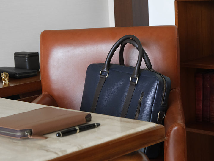 Cushioned handles clad in pebbled leather, a handy zipper pocket, and a trolley strap—practical features crafted for everyday ease.