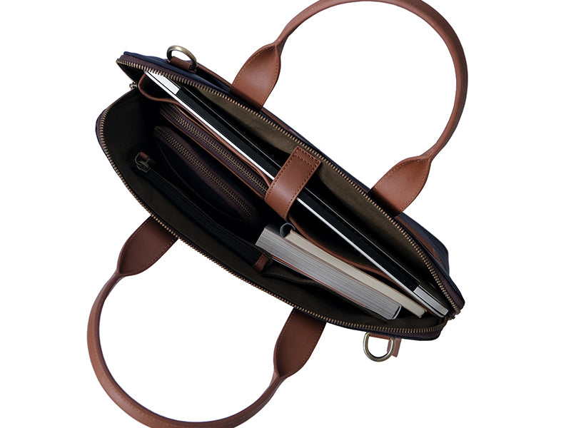 Ina is an elevated compact, professional, everyday work bag that goes well with formal and informal attire. With an accessible front zipper pocket, a luggage strap, long handles and much more; Ina enables for easy comfortable carry from AM to PM.