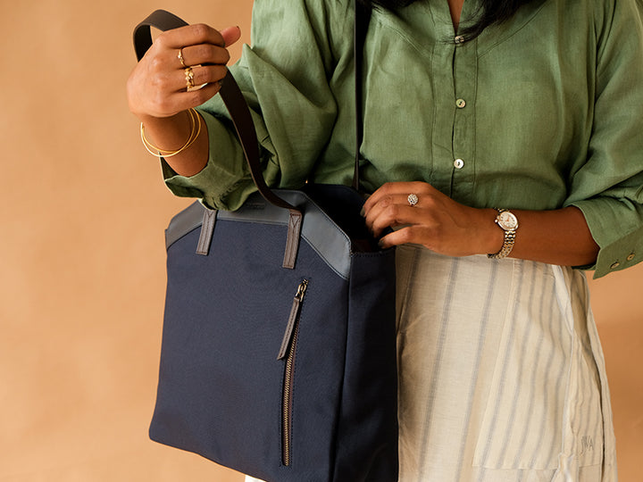 Following a monotone design philosophy, Merissa is a formal everyday work bag that goes well with formal and informal attire. With 4 pockets, a luggage strap, long handles and much more; Merissa enables for easy comfortable carry from am to pm.