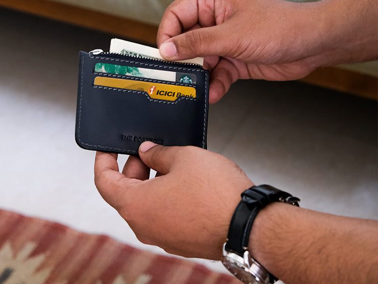 In it's new and upgraded version, The Stow zipper wallet continues to be a light, compact wallet but with a zipper that now runs all around and opens up into a wider mouth for easy access. Find card sleeves on the inside and a coin pocket.