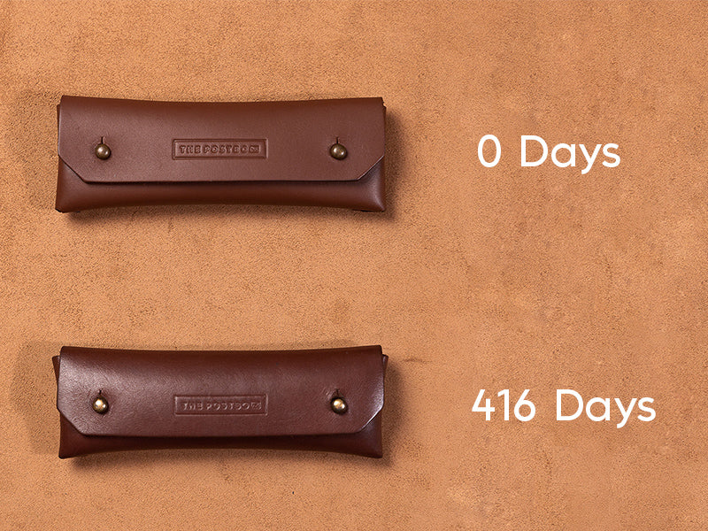Genuine Leathers age gracefully over time and ours is no less. The ageing of leathers depends upon the way it has been used and the environments it has been exposed to. Moisture in the air, exposure to the sun all play a vital role in how leather ages over time. To go in line with one of our core value of delivering consistency, we run periodic tests on the materials we use. We use the products we design to test for longevity, verstaility and overall relevant function. Seen here is the Pen & Pencil trunk case.