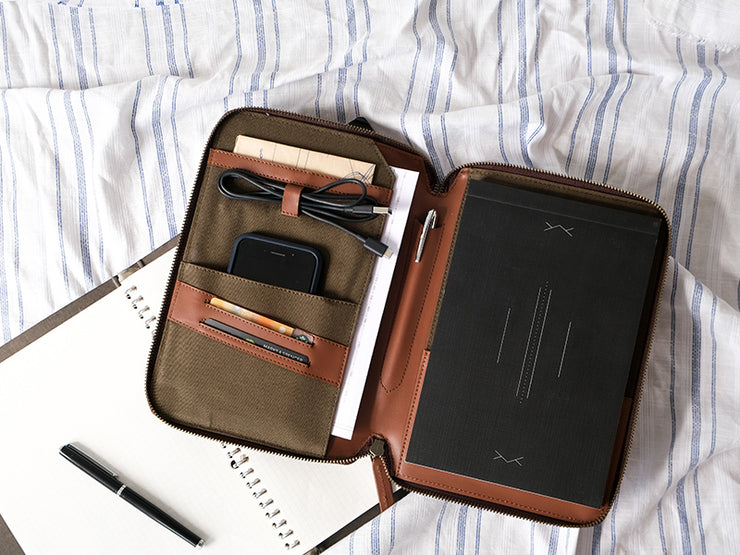 Imagine is an everyday reusable zipper notepad organiser. The organisation on the inside is designed to remind you to carry all the essentials you need when you have meetings at a cafe or at your client's office. The notepad design is such that you can flip through the pages without taking them out from the organiser.