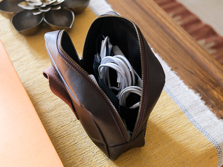 The Mavi Tech kit is an EDC Kit made with our signature genuine nappa leather. Designed to help you organize your everyday tech essentials i.e. your chargers and cables in one place, the squarish silhouette helps you stack it neatly in our tote/backpack.