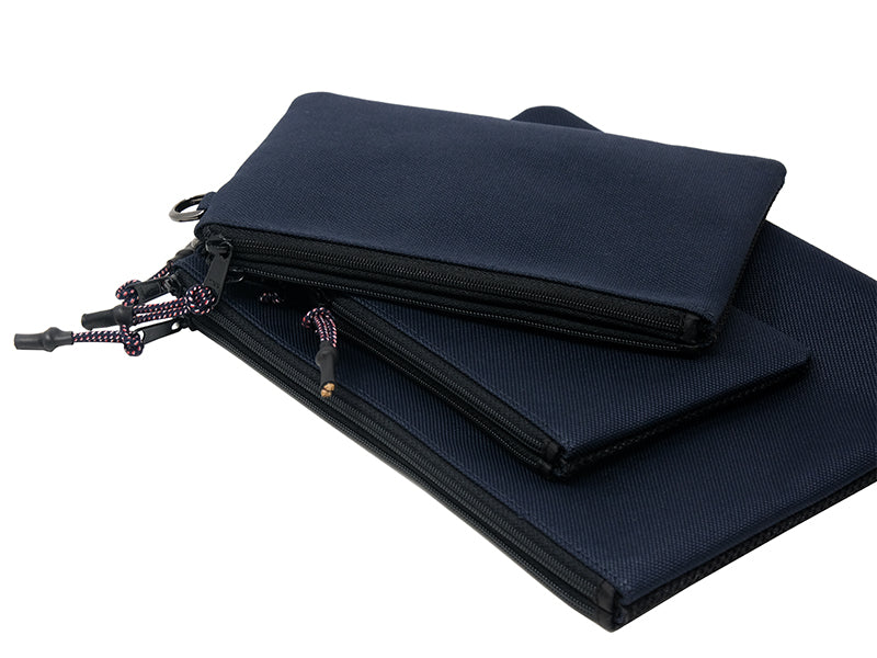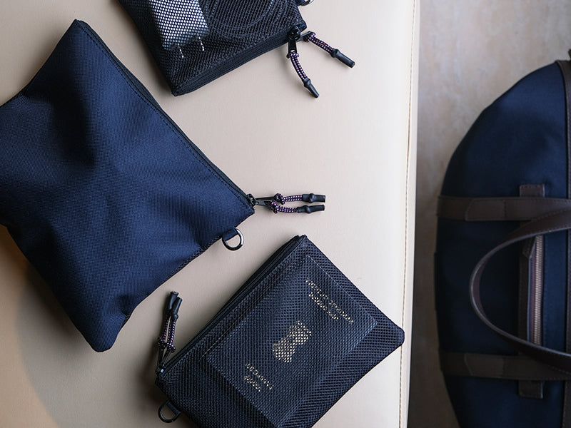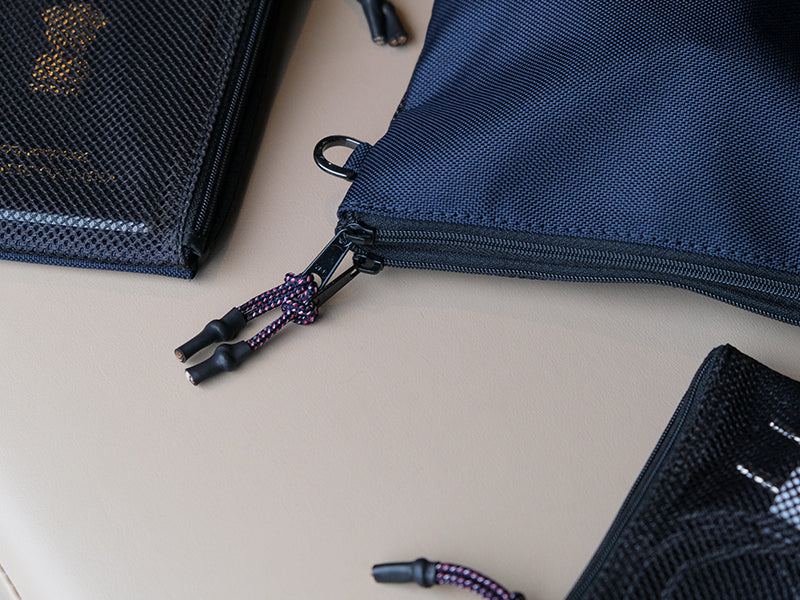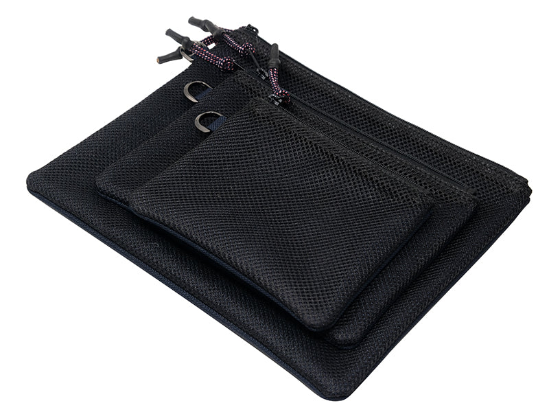 Made in 100% durable, cordura canvas and mesh, these travel pouches are designed to last a long time. With two compartments, one mesh and one closed, the pouches are designed to organise your travel by categorising your essentials based on type and size.